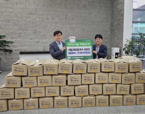 대구 수성구 사월교회는 지난 19일 어려운 이웃을 돕기 위한 생필품 꾸러미 55박스(440만원 상당)를 고산3동 행정복지센터에 기탁했다.