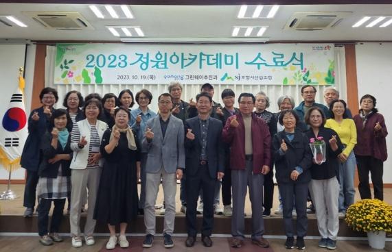 포항시는 지난 19일 포항시 산림조합 숲마을 대강당에서 ‘2023년 정원 아카데미’ 수강생들과 관계자들이 참석한 가운데 수료식을 개최했다.