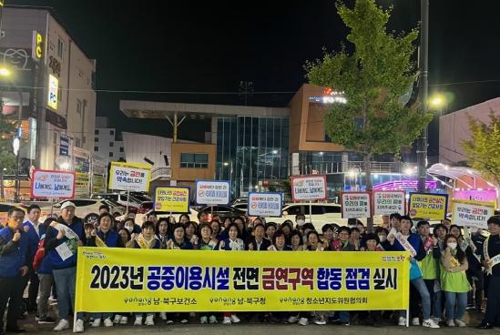 10월 4일부터 12월 3일까지 남·북구보건소, 남·북구청, 포항시 청소년지도위원협의회로 구성된 합동 점검반 8개 조는 민관 합동으로 주·야간 금연구역 점검과 흡연 예방 및 금연 캠페인을 실시하고 있다.