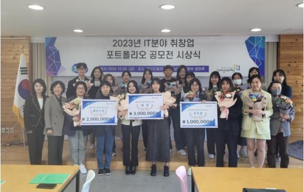 경기도일자리재단 주최로 열린 ‘IT분야 취·창업 포트폴리오 공모전’에서 37명(팀)이 수상의 영예를 안았다. 공모전 시상식과 수상 작품에 대한 전시회가 20일 경기도일자리재단 남부사업본부(용인시 소재) 꿈마루 건물에서 열렸다.