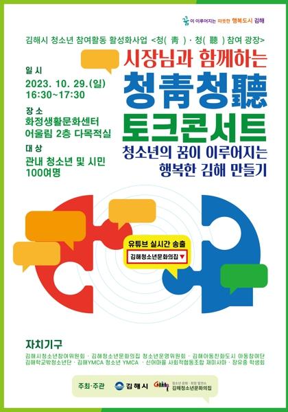김해시는 10월 29일 일요일 오후 4시 30분, 화정생활문화센터어울림에서 김해시장님과 함께하는 청청토크콘서트를 개최한다.