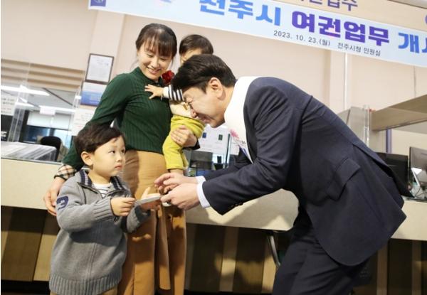 전주시청에서 발급하는 제1호 여권 신청자가 탄생했다.
