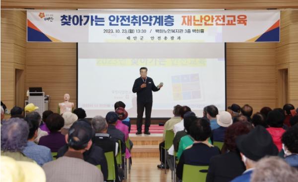 태안군이 재난 취약계층의 안전 확보를 위해 ‘찾아가는 재난안전교육’ 추진에 앞장서며 주민들의 큰 호응을 얻고 있다.