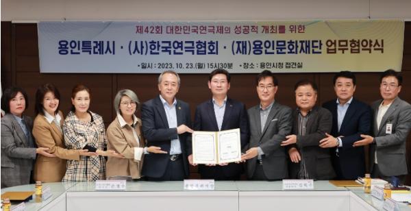 용인특례시가 23일 내년에 열리는 ‘제42회 대한민국연극제’의 성공 개최를 위해 (사)한국연극협회와 (재)용인문화재단과 함께 업무 협약식을 가졌다.