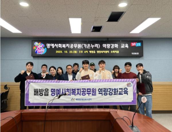 아산시 배방읍 행정복지센터가 지난 23일 호서대학교 동아리 ‘가온누리’ 학생들과 업무협약을 맺고 명예 사회복지공무원 위촉 및 인적 안전망 강화를 위한 역량 강화 교육을 진행했다.