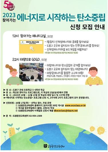 프로그램과 관련한 더 자세한 내용은 도봉환경교육센터 누리집 또는 전화 문의를 통해 확인 가능하다.