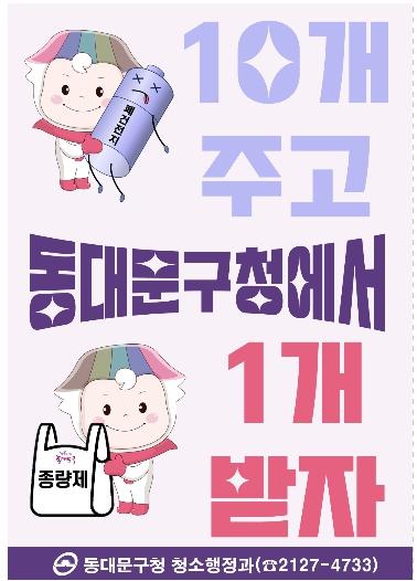 교환을 원하는 주민은 매주 월?수?금요일 9시부터 18시까지 구청 청소행정과(동대문구 천호대로 145, 3층)로 방문하면 된다. 사업 기간은 11월 1일부터 12월 29일까지로 종량제 봉투 소진 시 사업이 조기 종료될 수 있다.