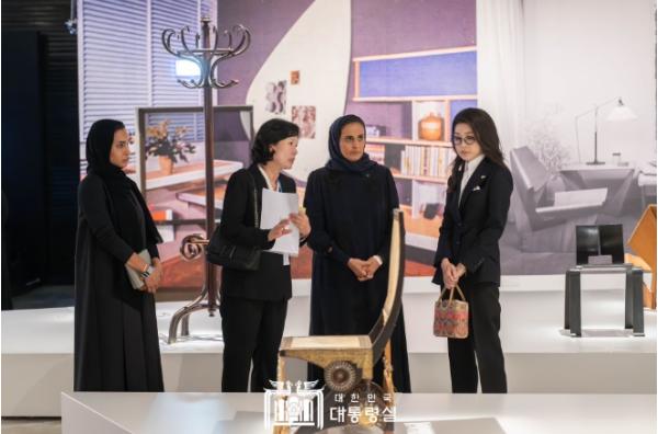 김 여사는 알 마야사 공주의 안내로 M7 미술관의 다양한 디자인 전시를 둘러봤다. 알 마야사 공주는 선대 왕의 뜻에 따라 공공기관, 학교, 병원 등 곳곳에서 국민들이 예술을 접하도록 하고 있다고 소개하면서, 한국과도 문화·예술 교류가 더욱 많아지기를 바란다고 했다.