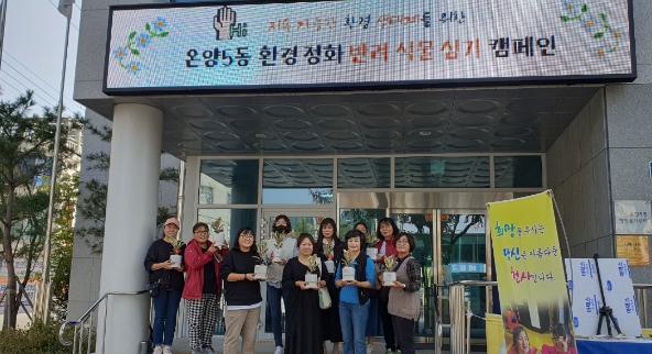 아산시 온양5동 여성자원봉사단이 지난 25일 환경 정화 반려 식물 심기 캠페인을 통해 환경 감수성 배양 및 지속 가능한 생태계 관련 심도 있는 교육을 진행했다.