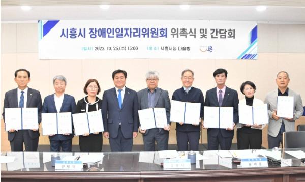 시흥시는 민선8기 공약인 ‘장애인일자리위원회 구성과 사업 확대’를 추진하기 위한 첫걸음으로, 지난 25일 시청 다슬방에서 ‘시흥시 장애인일자리위원회’ 위촉식과 간담회를 개최했다.