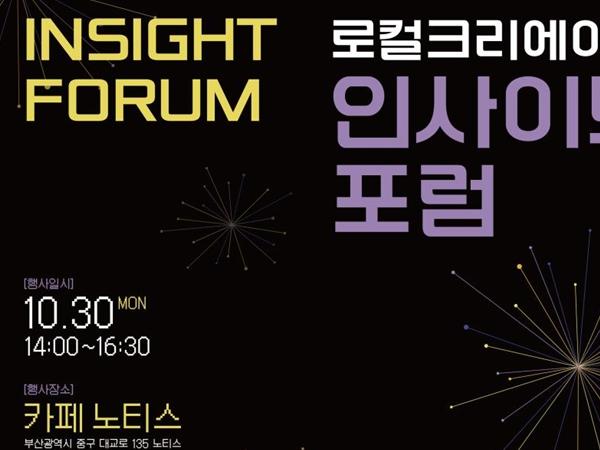 부산시와 부산테크노파크는 오는 10월 30일 오후 2시 카페 노티스(중구 소재)에서 '로컬크리에이터 인사이트 포럼'을 개최한다고 밝혔다.