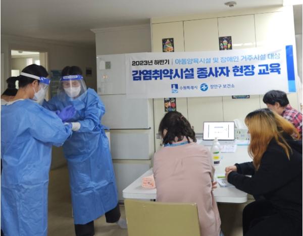 장안구보건소는 시설 관계자들이 감염병 발생 대응 체계를 확립해 시설 내 감염병 확산을 방지하고 방역관리 환경을 조성하는 것을 돕기 위해 현장 교육을 진행하게 됐다.