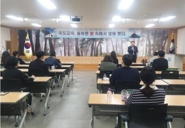교육은 독도 의용군 수비대기념관 조석종 관장을 강사로 초청해 올바른 독도 수호 의식과 독도를 지키기 위해 애쓴 독도 의용군 수비대의 업적을 되새겨보는 시간 등으로 진행됐다.