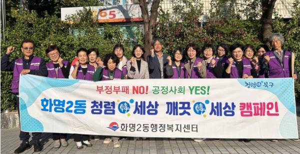 부산 북구 화명2동 행정복지센터는 10월 25일 통장연합회 회원들과 함께 화명2동 청렴 문화 확산을 위한 캠페인을 실시했다고 밝혔다.