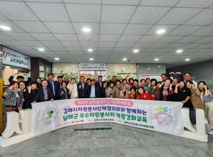 김해시자원봉사단체협의회와 김해시자원봉사센터는 26일 도내 자원봉사 자매결연 지자체인 남해군의 자원봉사단체협의회에서 김해시를 방문해 교류활동을 했다고 밝혔다.
