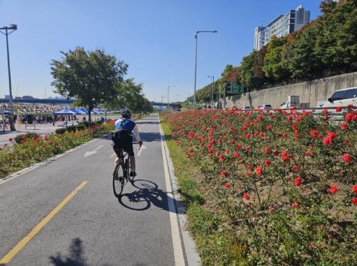 꽃대를 자르면 약 60일 후 개화하는 사계장미의 특성을 고려하여 지난 여름에 전정 작업을 마쳤고, 최근 중랑천 둔치 산책로 5.6km를 따라 가을맞이 사계장미 43만 송이가 만개했다. 10월 말에 만개한 사계장미는 본격적인 겨울이 시작되기 전까지 개화할 예정이다.