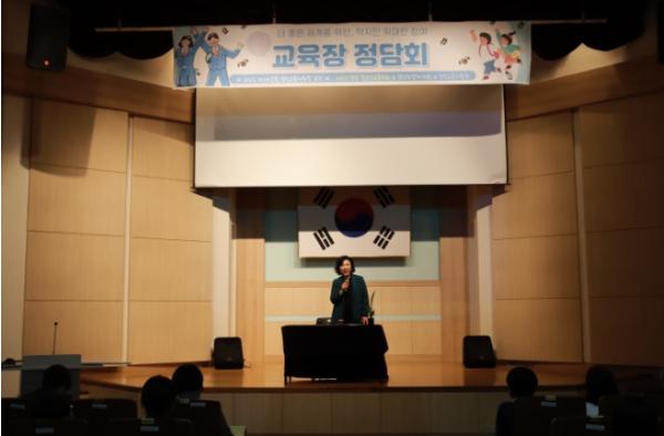 경기도성남교육지원청은 10월 26일 성남교육지원청 대강당에서‘2023 학생자치 활성화를 위한 교육장 정담회’를 개최했다. ‘더 좋은 세계를 위한 작지만 위대한 참여’를 주제로 오찬숙 교육장과 성남 청소년교육의회 의원, 관내 학생자치회 임원 약 80여명이 참석했다.