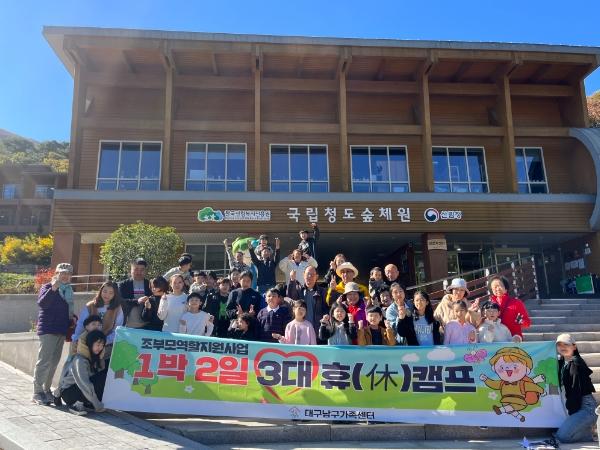 대구광역시 남구청는 지난 20일과 21일 양일간, 대구 남구가족센터에서 조부모 역할지원사업의 일환으로 국립 청도 숲체원에서 3대가 함께하는(조부모-부모-자녀) 1박 2일 숲 캠프를 실시했다고 27일 밝혔다.