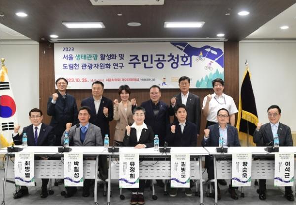 서울특별시의회 문화체육관광위원회 유정희부위원장(더불어민주당, 관악4)이 2023년 10월 26일 오후 2시 서울특별시의회 제2대회의실에서 개최된 서울 생태관광 활성화 및 도림천 관광자원화 연구 주민 공청회에 참석해 서울 생태관광 활성화 방안에 대해 논의했다.