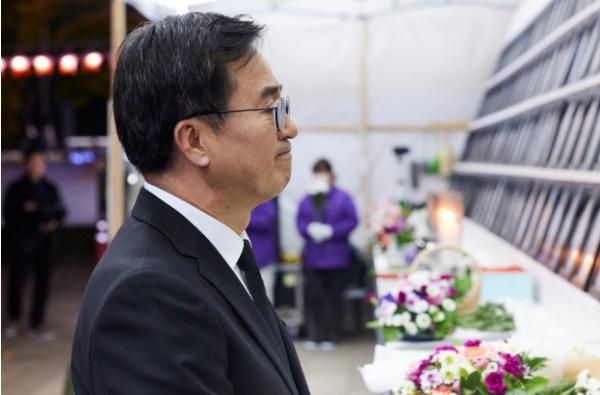 김동연 경기도지사는 26일 저녁 서울 이태원 참사 분향소에 참배했다. 김동연 지사는 27일 누리소통망(SNS)을 통해 “가족들과 평범한 일상을 보내는 것, 그것이 얼마나 어렵고 감사해야 하는 일인지 1년 동안 잊지 않았다”고 말했다.
