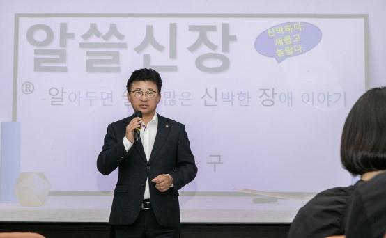 이날 김용구 한남장애인심리상담센터장을 초청해 ‘알쓸신장-알아두면 쓸데 많은 신박한 장애이야기’라는 주제로 유형별 장애인의 이해, 장애 인권, 후천적 장애 예방, 직장 내 장애인식개선 등에 대한 교육을 진행했다.