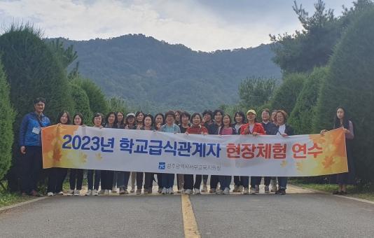 광주동·서부교육지원청은 지난 13, 27일 양일간 나주 전라남도산림자원연구소 일원에서 영양(교)사, 조리사 각 40여 명을 대상으로 ‘2023년 학교급식관계자 현장체험 연수’를 실시했다.
