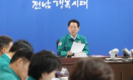 김영록 전라남도지사는 29일 럼피스킨병 대응 긴급재난대책 회의를 열고, 도 재난안전대책본부 중심으로 24시간 비상 대응체계 유지, 고병원성 조류인플루엔자(AI) 대비까지 신속하고 빈틈없는 통합방역 추진을 주문했다.