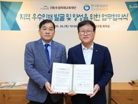 대구 수성구 수성미래교육재단과 한국환경공단 대구경북환경본부는 지난 26일 지역 우수 인재 발굴·양성을 위한 업무협약을 체결했다.