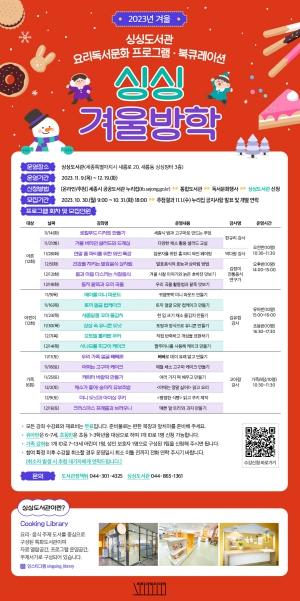 세종시립도서관가 로컬푸드 디저트 만들기 등 18개 강좌로 구성된 ‘2023년 겨울방학 싱싱도서관 독서문화 프로그램’을 운영하기로 하고, 수강생을 모집한다.