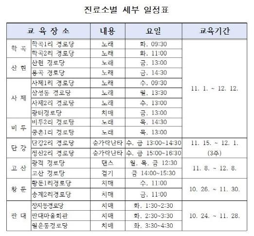 원주시보건소는 12월 12일까지 관내 8개 보건진료소(학곡,고산,산현,사제,단강,비두,황둔,판대)에서 관할 지역 경로당을 방문해 ‘농한기 건강 교실’을 운영한다.