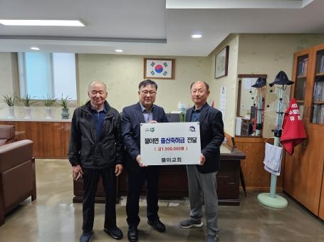 봉화군 물야면 오록리에 있는 물야교회는 지난 27일 물야면사무소를 방문해 올해 물야면에 출생한 아동 3명을 축하하기 위해 현금 150만 원을 기탁했다.