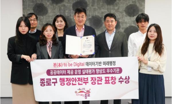 종로구가 '2022년 공공데이터 제공 운영 실태 평가'에서 향상도 우수기관으로 선정, 서울시 25개 자치구 중 유일하게 행정안전부 장관 표창을 수상했다.