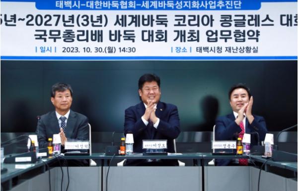 태백시는 지난 30일 대한바둑협회, 세계바둑성지화사업추진단과의 협약을 통해 2025년 세계바둑 코리아 콩글레스 대회 및 국무총리배 바둑대회를 개최하기로 결정했다고 밝혔다.