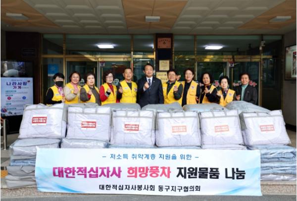대한적십자사봉사회 인천동구지구협의회는 24일 ‘희망풍차’결연을 맺은 저소득 취약계층 105가구에 이불을 전달했다고 밝혔다.