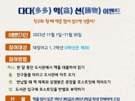 제주도교육청 대정여자고등학교는 10월 30일부터 11월 30일까지 한 달 동안‘다다익선’도서관 프로그램을 운영하고 있다.