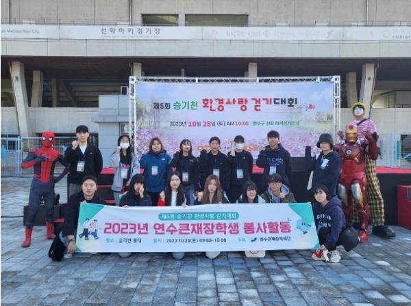 인천시 연수구가 28일 개최한 ‘제5회 승기천 환경사랑 걷기대회’에 연수큰재장학생이 자원봉사활동에 참여해 눈길을 끌었다.