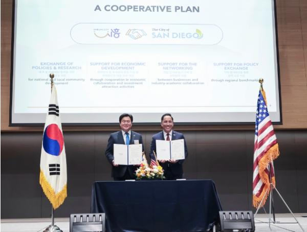 시흥시는 미국 바이오산업의 대표 도시 중 하나인 샌디에이고(San Diego)시와 경제발전 및 우호 협력 증진을 위한 업무협약을 체결하고, 교류 협력 방안 등을 논의했다.
