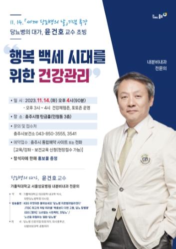 충주시는 오는 11월 14일 오후 4시 시청 3층 탄금홀(민원동)에서 ‘세계 당뇨병의 날’을 기념해 특강을 진행한다.