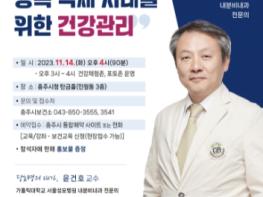 강의는 EBS ‘명의’, KBS ‘무엇이든 물어보세요’ 등 다수 방송 출연하며 당뇨병 명의로 잘 알려진 가톨릭대학교 의과대학 내과학 박사 윤건호 교수를 초빙해 ‘행복 백세 시대를 위한 건강관리’라는 주제로 진행된다.
