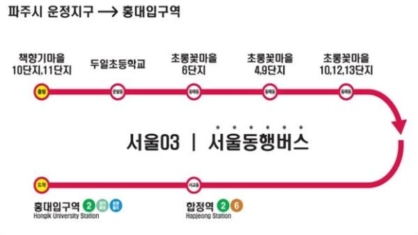파주시는 운정에서 홍대입구역을 잇는 서울동행버스가 11월 6일부터 운행을 시작한다고 밝혔다.