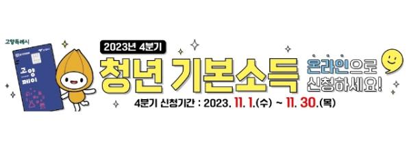 고양특례시는 청년의 정기적인 소득지원을 통한 사회활동 촉진 및 사회적 기본권 보장을 위해 오는 11월 1일부터 11월 30일까지 4분기 청년기본소득을 신청 받는다.