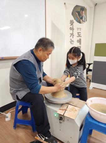 병설 유치원생과 초등학생들이 코일링 기법으로 자신만의 그릇을 만들며 즐거워했다. 그리고 평소 쉽게 접할 수 없는 물레를 돌려 흙을 빚어 그릇도 만들었는데, 이는 모두 석담 최병덕 여주 도예 명장(제4대)의 재능 기부 덕분이다.