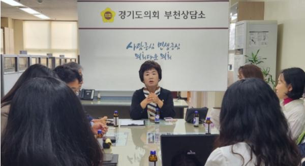 경기도의회 교육기획위원회 황진희 위원장(더민주, 부천4)은 10월 31일 부천상담소에서 경기도교육청 학교설립기획과, 한국국·공립유치원 연합회 회장, 경기도공립유치원교사연합회 관계자, 학부모 대표자들이 함께한 자리에서 ‘유치원 유아 정원 감축 요구’에 관해 논의하는 자리를 가졌다.