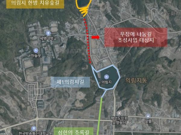 의림지 무장애나눔길 조성사업은 총 사업비 16억원에 제1의림지와 제2의림지를 연결하는 숲길(경사도 8%이하)을 조성하는 사업으로, 숲길을 이용하기 어려운 보행약자(장애인, 노약자, 임산부 등)가 장애 없이 자유롭게 숲을 이용할 수 있도록 조성할 계획이다.