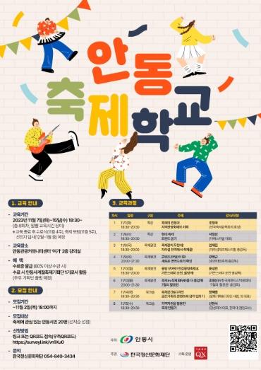 안동시와 (재)한국정신문화재단은 본격적인 사계절 축제 육성과 축제 기획·운영 주체의 역량 강화를 위해 ‘2023 안동축제학교’를 운영한다.