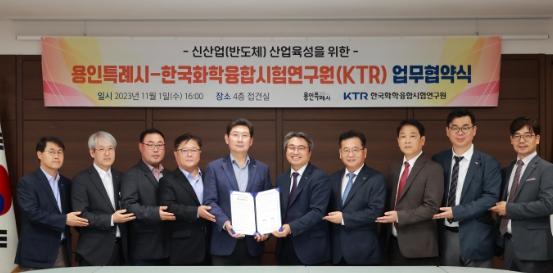 용인특례시는 1일 시장 접견실에서 산업통상자원부 산하 비영리법인인 KTR과 신산업(반도체) 사업 육성을 위한 업무협약을 체결했다고 밝혔다.