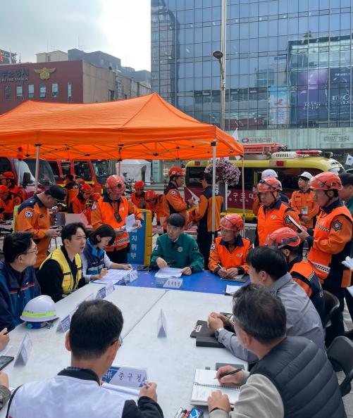 중구는 다중이용시설인 충무아트센터에서‘지진으로 인한 가스폭발 및 화재 발생 등 복합적인 재난에 30명의 사상자가 발생하는 상황’을 가정하고 중부소방서, 중부경찰서, 남대문경찰서, 국립중앙의료원, 육군 3537부대 등 총 14개 기관과 협업하여 재난 현장 통합지원본부와 재난안전대책 본부를 꾸린다.
