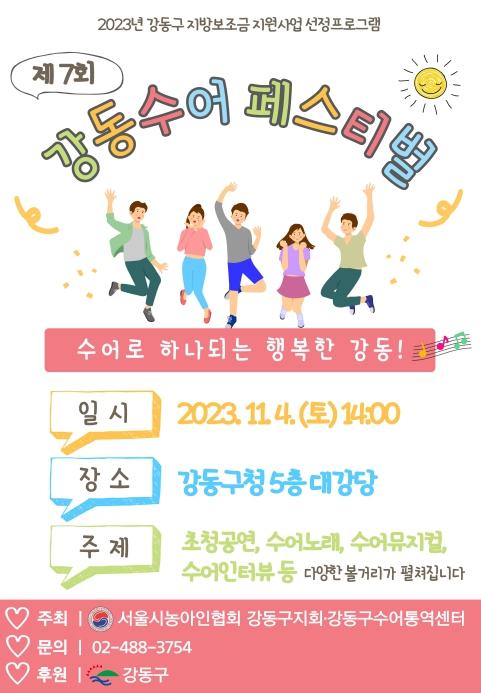 강동구가 오는 4일, 강동구청 대강당에서 ‘제7회 수어 페스티벌’을 개최한다고 밝혔다.