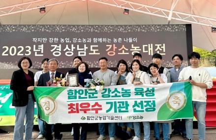 함안군은 경상남도농업기술원 주관한 2023년 강소농대전에서 ‘최우수 기관’으로 선정되는 영예를 안았다.