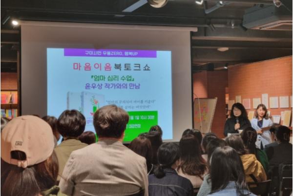 행사는 삼일문고와 협력해 진행됐으며, ‘엄마 심리 수업1, 2:실전편’의 저자 윤우상을 초청해 엄마들의 자존감을 높이고 아이가 행복해지는 심리 특강을 했다.